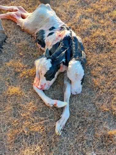 El animal con esa malformación sorprendió a los empleados del tambo, quienes, tras un difícil trabajo de parto, llegaron a tomarle fotografías al animal poco antes de que muera, informó el sitio Todo Lechería.