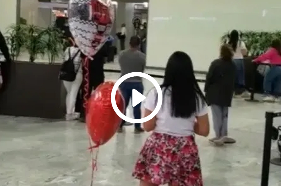 Las imágenes muestran a la joven esperando a su amado en la salida de los vuelos internacionales (el hombre llegaba de Francia a México tras viajar 50 horas), saltando ansiosa de un pie a otro y con dos globos en forma de corazón detrás de ella. El desembarco termina y los pasajeros bajan, pero no hay abrazo ni encuentro: el novio había pasado en frente suyo sin reconocerla.