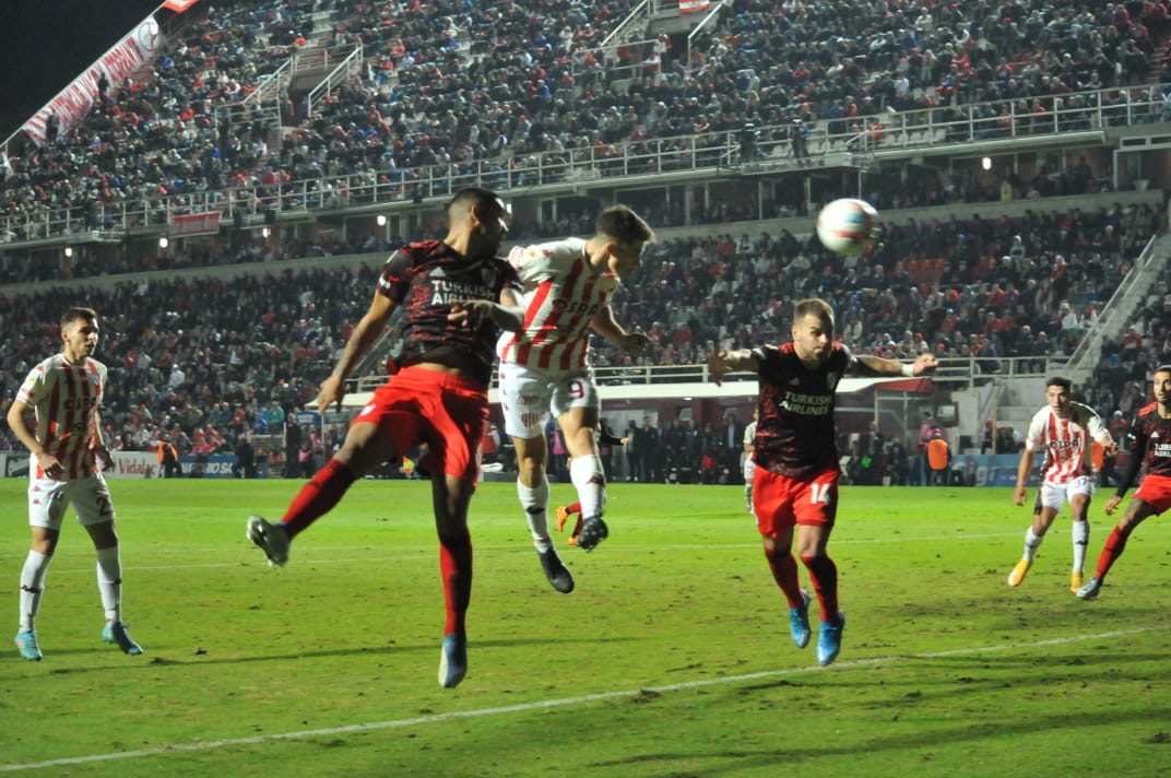 La más clara de Unión ocurrió a los 23 minutos con la tapada de Franco Armani ante Ismael Machuca. En el rebote, Peralta Bauer cabeceó y su remate dio en el travesaño.