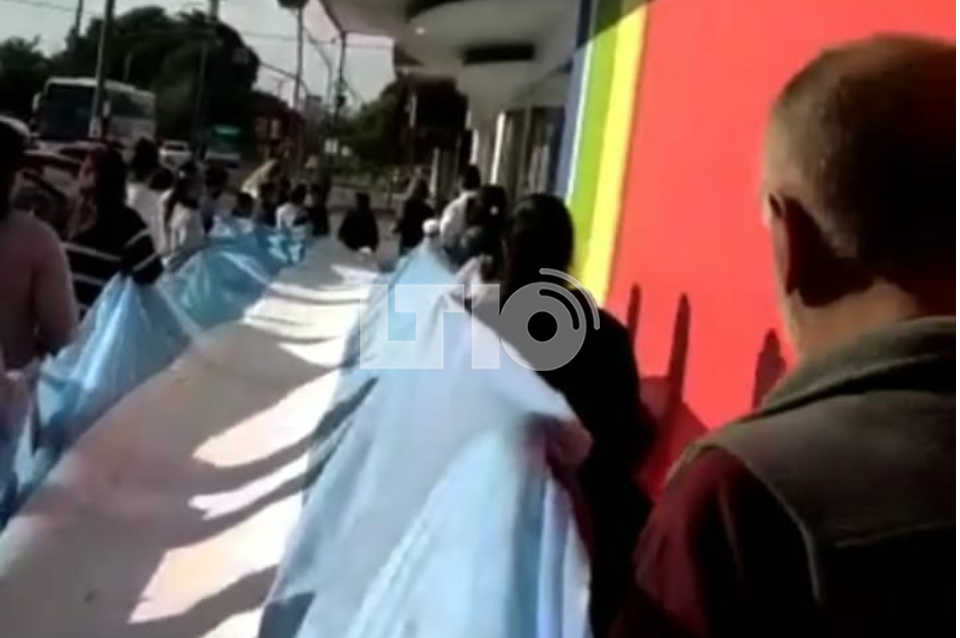 #DíaDeLaBandera | Alumnos de la escuela Drago sacaron a pasear una gran bandera por las calles del barrio ► pic.twitter.com/1BaGpVCqJ6