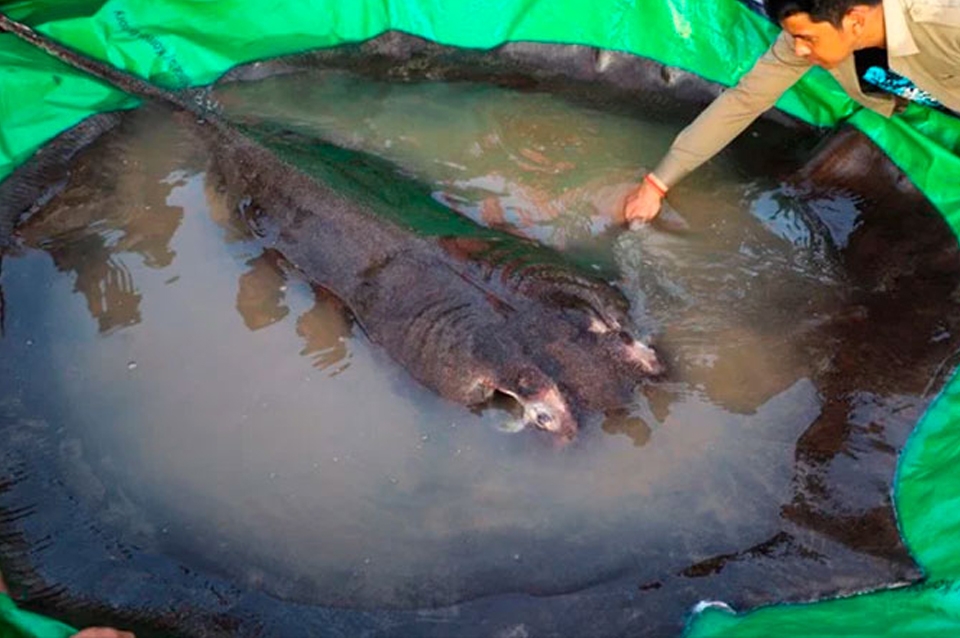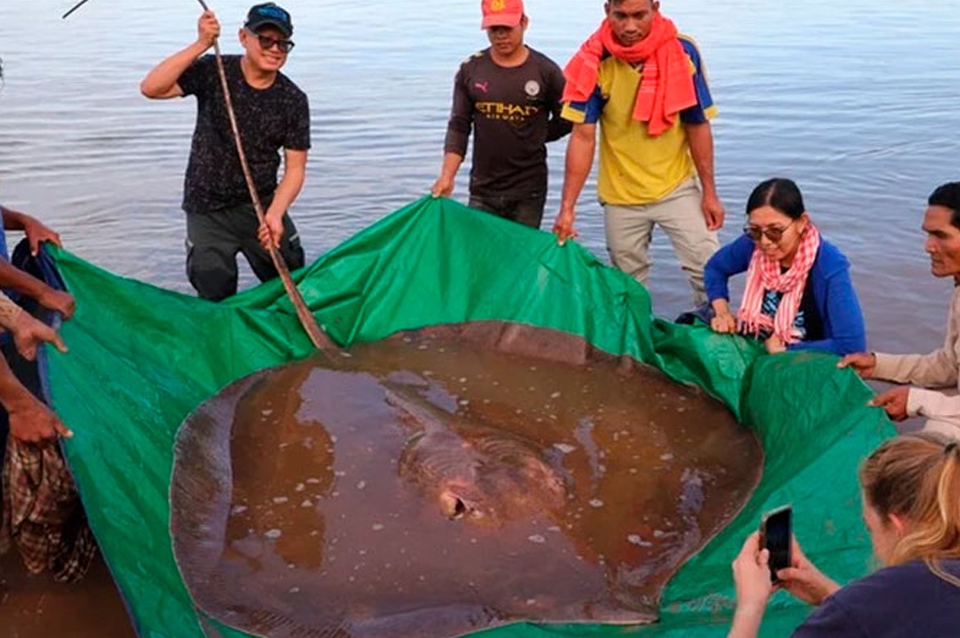 El pez de agua dulce más grande registrado en el mundo, una raya gigante, fue capturado en el río Mekong en Camboya, según científicos de la nación del sudeste asiático y de Estados Unidos.