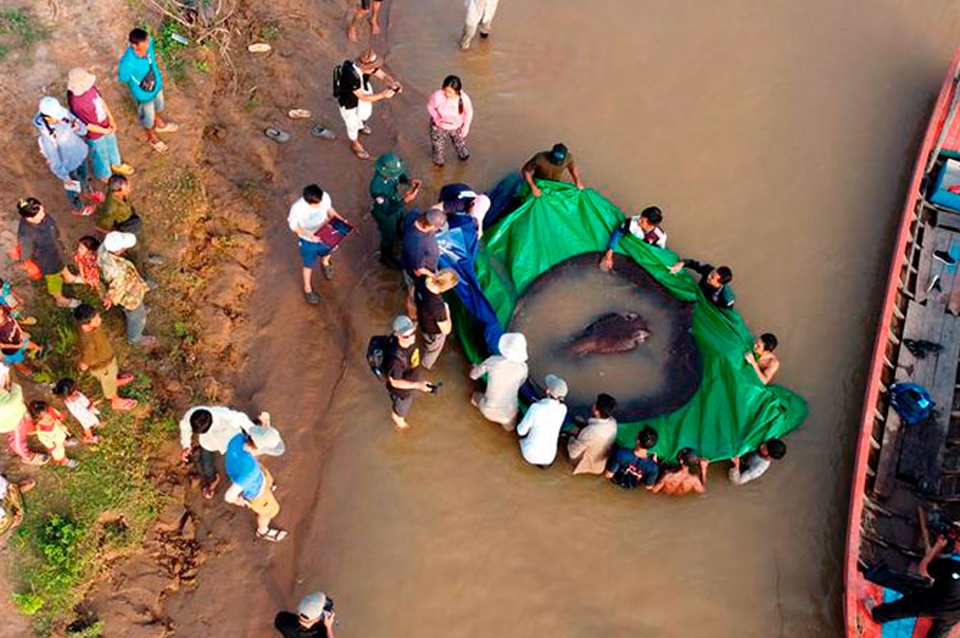 La raya fue atrapada por un pescador local al sur de Stung Treng, en el noreste de Camboya. El pescador alertó a un equipo cercano de científicos del proyecto Maravillas del Mekong, que ha difundido su trabajo de conservación en las comunidades a lo largo del río.