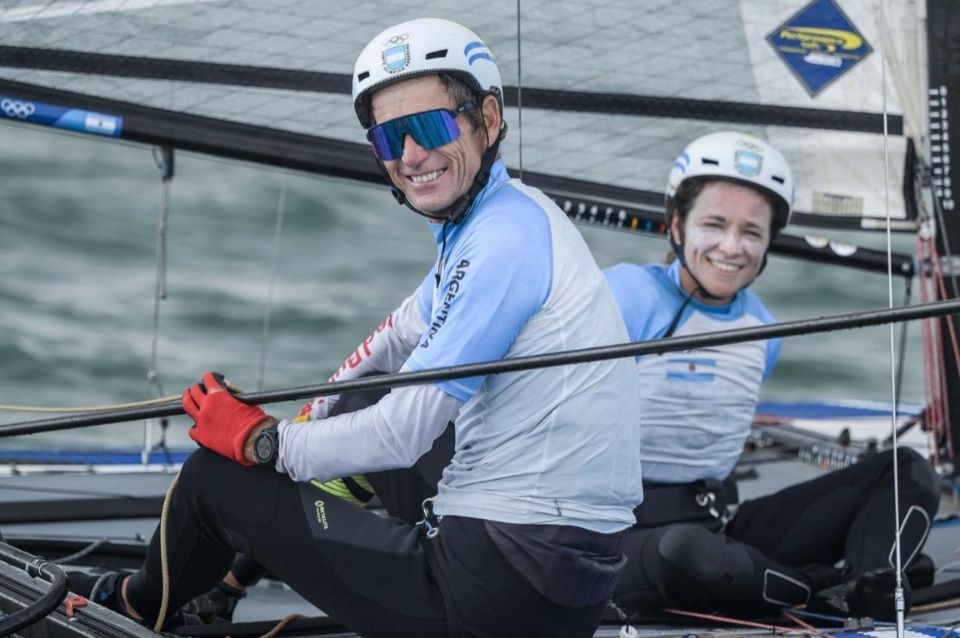 Lange y Travascio terminaron, en su tercera competencia oficial en la clase Nacra 17, novenos, décimos, 14tos y undécimos en las regatas de hoy y ascendieron al 16to puesto, del 19no, con 108 puntos, en tanto que los líderes son los italianos Ruggero Tita y Caterina Banti, últimos campeones olímpicos en Tokio, con 19 unidades.