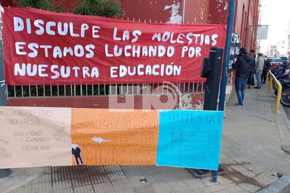Cabe recordar que este lunes, alumnos de la institución, a través de las redes sociales, publicaron una serie de imágenes en la que mostraron el estado en el que se encuentra el edificio: sin vidrios en puertas y ventanas, revoque caído en paredes y techos, baños clausurados, instalaciones eléctricas en riesgo, e incluso la presencia de roedores.