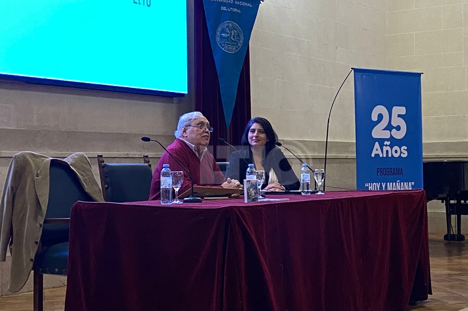 "Hoy y mañana" ciclo radial conducido por Rogelio Alaniz cumplió 25 años al aire y lo celebró con un encuentro con sus seguidores en el Paraninfo de la Universidad Nacional del Litoral.