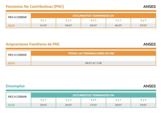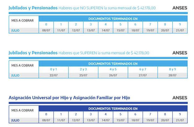 Anses informa el calendario de pagos de julio para jubilados, jubiladas, pensionados y pensionadas, Pensiones No Contributivas, titulares de la Asignación Universal por Hijo y la Asignación por Embarazo, Asignaciones Familiares y de Pago Único (Matrimonio, Nacimiento y Adopción) y Prestación por Desempleo.