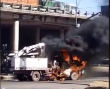 Una grúa de la Empresa Provincial de la Energía (EPE), se incendió durante el mediodía de este jueves en Rosario, en la zona de Nuestra Señora del Rosario a la altura de Circunvalación. El insólito hecho se dio cuando el vehículo, que estaba en desuso, era trasladado a tiro hacia un galpón de la firma estatal.