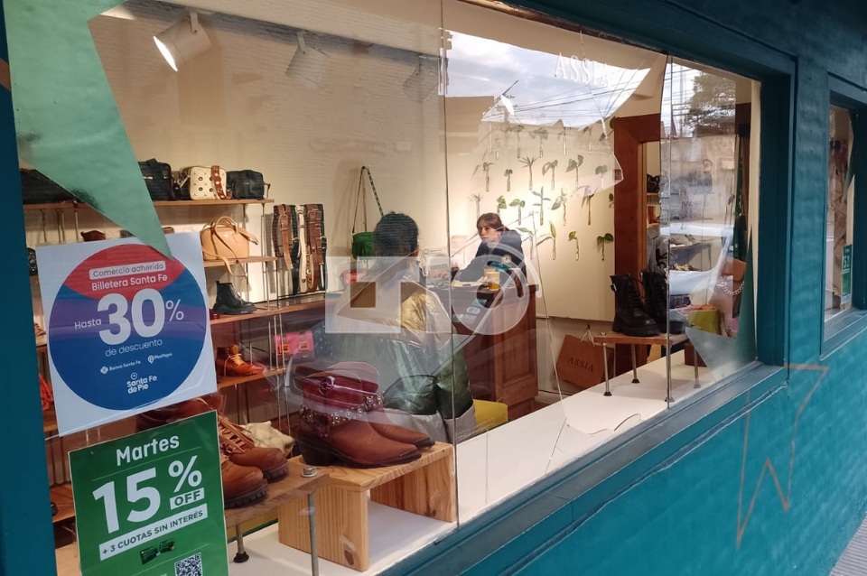 Este viernes por la mañana un nuevo hecho de inseguridad volvió a golpear al comercio santafesino. Un local ubicado en Lisandro de la Torre al 2500 recibió un potente piedrazo que rompió la vidriera, produciendo un agujero a traves del cual los delincuentes se llevaron artículos de alto valor.