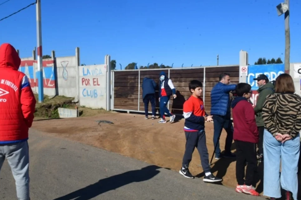 Uno de los simpatizantes escribió en uno de los portones de ingreso: "Fuera los violadores del fútbol" y luego lo borró por pedido de sus compañeros de tribuna.