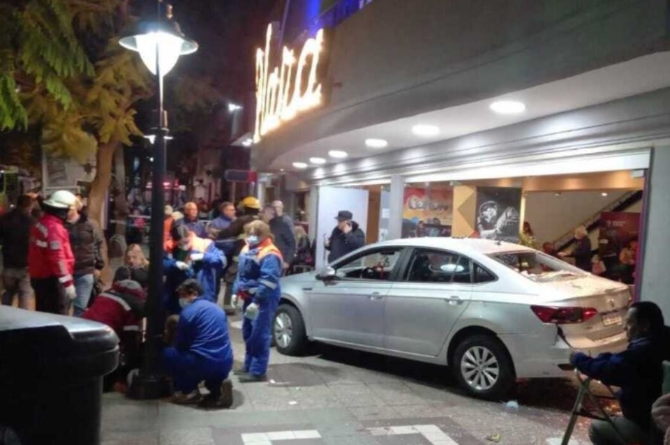 En ese momento, un Volkswagen Vento conducido por un hombre con problemas motrices, que estaba estacionado a 45 grados, arremetió marcha atrás contra el hall del teatro atropellando a varias personas.