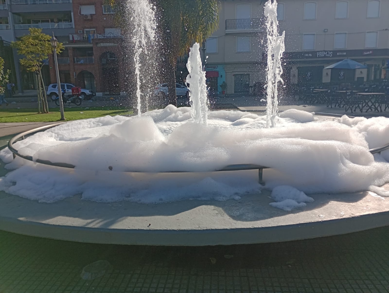 El domingo, dos fuentes de la ciudad de Santa Fe amanecieron cubiertas de espuma. La situación llamó la atención de los vecinos que alertaron al 0800 de la Municipalidad.