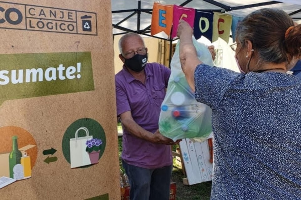 El canje ecológico consiste en un punto de intercambio itinerante, donde se pueden entregar materiales reciclables a cambio de plantines y otros productos sustentables y artesanales.