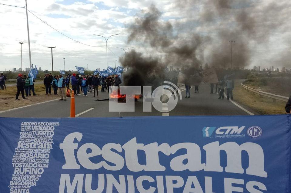 Los otros cortes fueron en Reconquista en la Ruta 11, Ruta 9 con la A02 en Roldán, y en el límite de Capitán Bermúdez con Granadero Baigorria, y se extenderán durante unas tres horas.