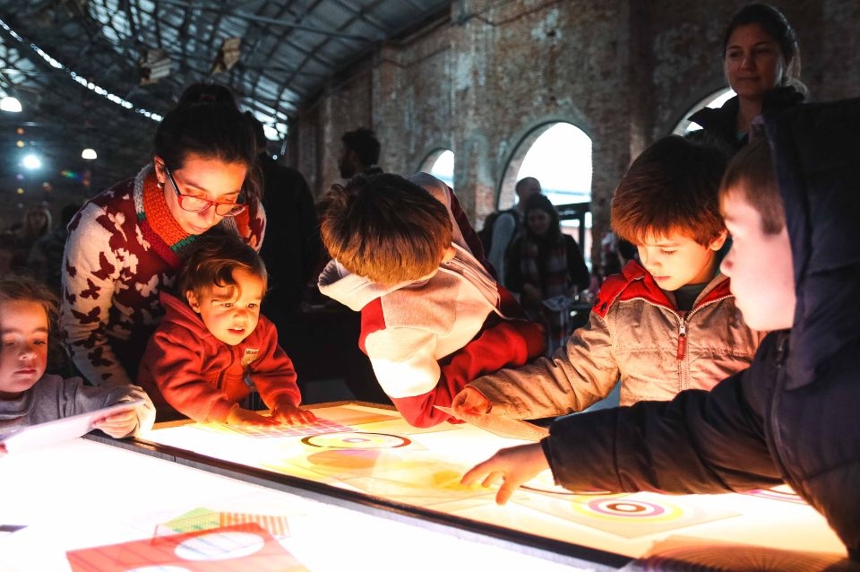 Luego, en el inicio del recorrido por el hall central, los visitantes se encontraron con gran cantidad de espacios de juego para todas las edades: tableros, espacio textil, trenes de madera y encastres, son algunas de las propuestas.