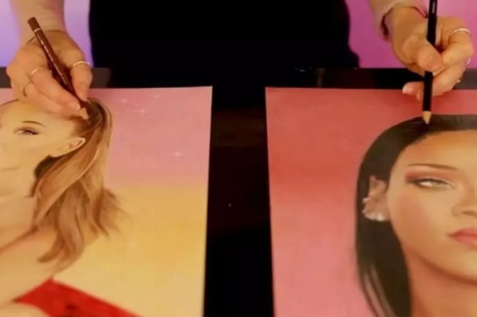 La artista ambidextra Rajacenna Van Dam, de Rotterdam (Países Bajos), filmó su proyecto de cuatro retratos en su estudio de arte. En su último vídeo ha reproducido a artistas de la talla de Taylor Swift, Ariana Grande, Rihanna y BillieEilish, pero no sólo ha dibujado imágenes increíblemente realistas de los músicos, sino que lo ha hecho dibujándolos al revés y con las dos manos.