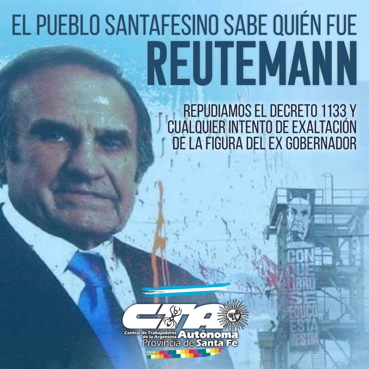 En un comunicado titulado "El pueblo santafesino sabe quién fue Reutemann", la CTA Autónoma Santa Fe junto a Amsafe Rosario y otras agrupaciones sociales y sindicales, expresó su "total repudio al decreto 1.133, en el cual se intenta exaltar la figura Carlos Reutemann, principal responsable de los hechos trágicos de diciembre de 2001 en nuestra región y del crimen hídrico en la capital santafesina durante el 2003".