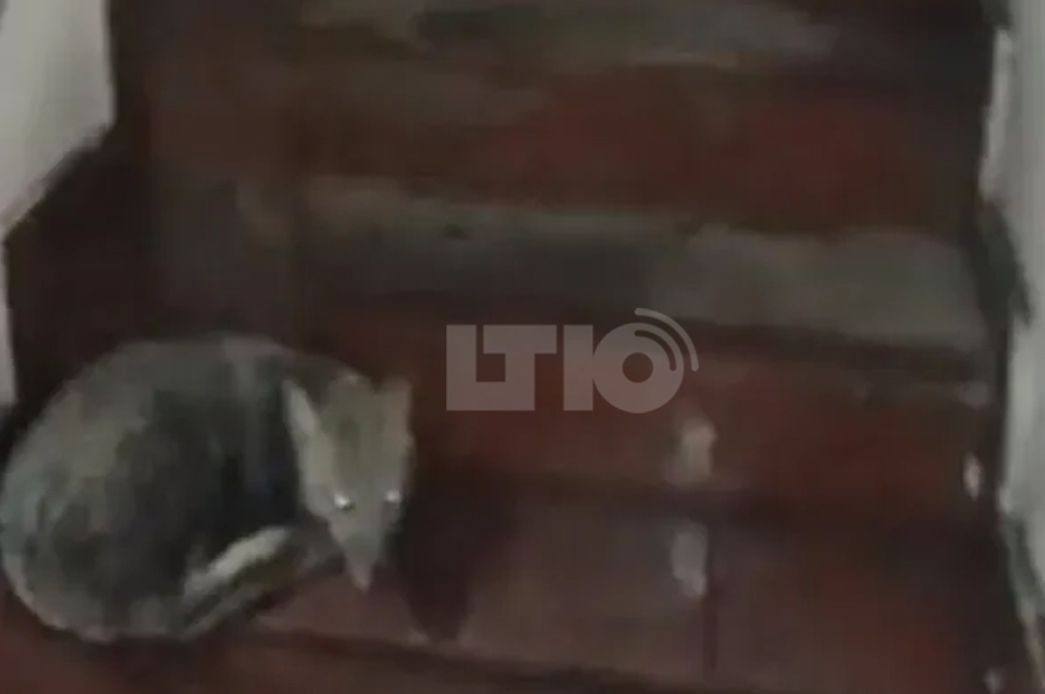 Según informó el periodista Fernando Tocho, los vecinos echaron a los baldazos al animal que finalmente escapó y sigue suelto. Uno logró filmarlo en uno de los descansos de la escalera.