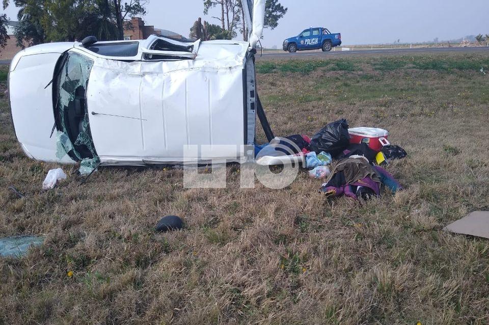 Por causas que aún no se determinaron, un utilitario habría cambiado bruscamente de carril impactando contra un camión. Ese golpe hizo que el vehículo volcara.