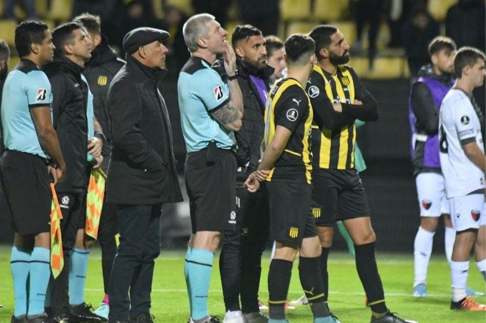 En ese ínterin, ingresaron los veedores de seguridad de la Confederación Sudamericana de Fútbol (Conmebol) y dialogaron durante 5 minutos con el árbitro brasileño Anderson Daronco dentro de la cancha.