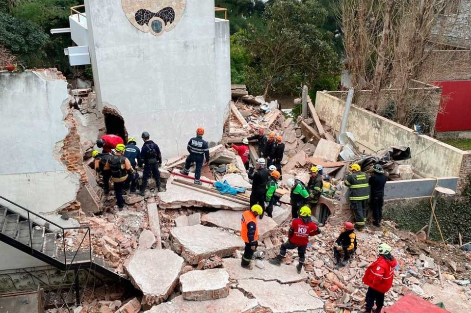 Brigadas de bomberos de toda la región, cuerpos de rescatistas y grupos con perros adiestrados hacen sus máximos esfuerzos desde el domingo a la noche cuando se derrumbó la casa de 3 plantas para encontrar al hombre que todavía continúa atrapado.