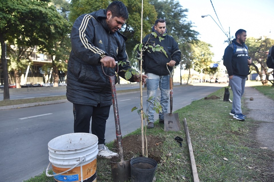 El programa de arbolado municipal sigue desarrollándose en diferentes puntos del ejido urbano. Una de las últimas grandes acciones se realizó en avenida Alem, entre Las Heras y Alvear, en el marco de la iniciativa Sumamos Verde, y en conjunto con la empresa CAM.