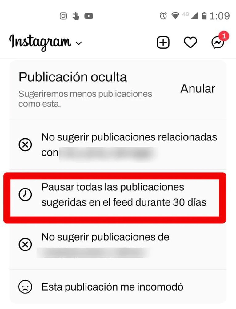 Instagram permite posponer las recomendaciones y publicaciones sugeridas en los feeds durante 30 días, y lo mejor es que solamente se necesita un par de clics.