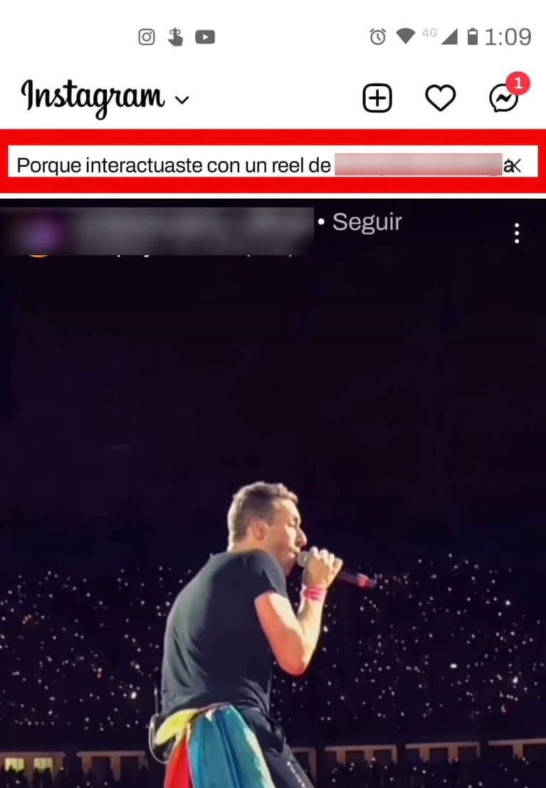¿Cómo hacerlo? Es simple. El primer paso es navegar el feed hasta que aparezca en pantalla alguna publicación recomendada. Identificarlas es sencillo, ya que habitualmente son acompañadas por frases como “porque seguís a…”, o “porque interactuaste con un Reel de…” y explicaciones similares.