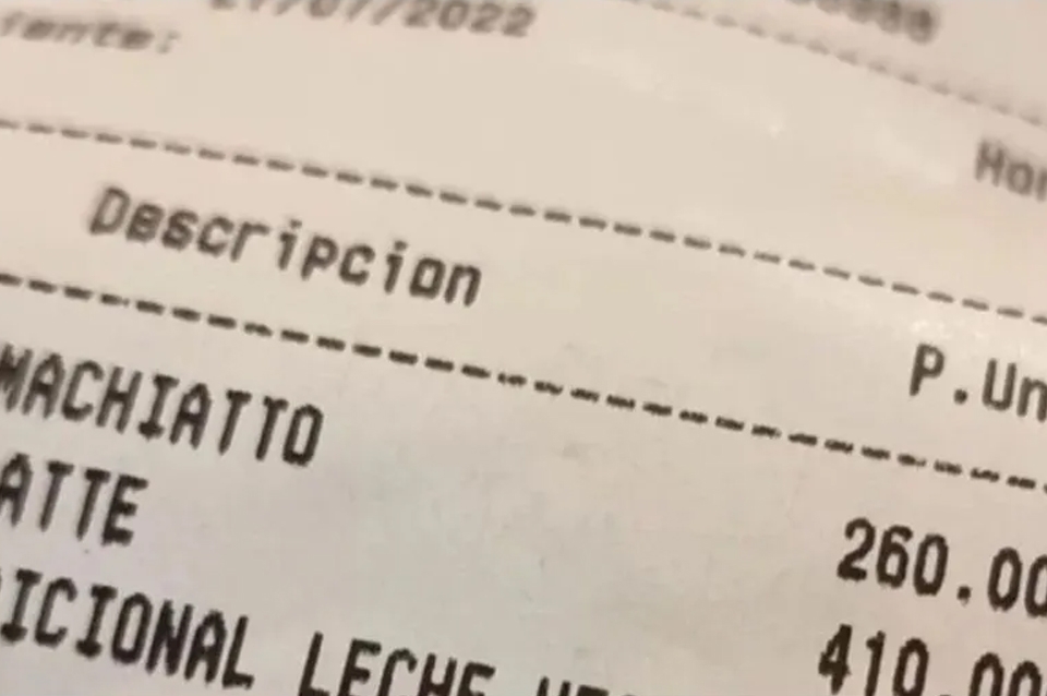El influencer gastronómico publicó la semana pasada un ticket a través de sus historias de Instagram, en donde se puede leer con claridad el detalle de la compra: el monto total a pagar fue de $850 por un café machiatto que le costó $260, un latte por el que abonó $410 y un “adicional leche vegan” de $180.