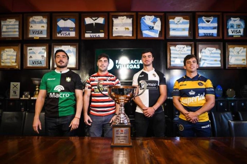 Además, lo hicieron los capitanes de los cuatro equipos, cada uno con la camiseta de su club: Tomás Ferreyra, por el CAE; Agustín Foradini, por Santa Fe Rugby; Ramiro Picotto, por GER; y Juan Rapussi, por Duendes; y autoridades de las áreas de Deportes de los gobiernos provincial y municipal.