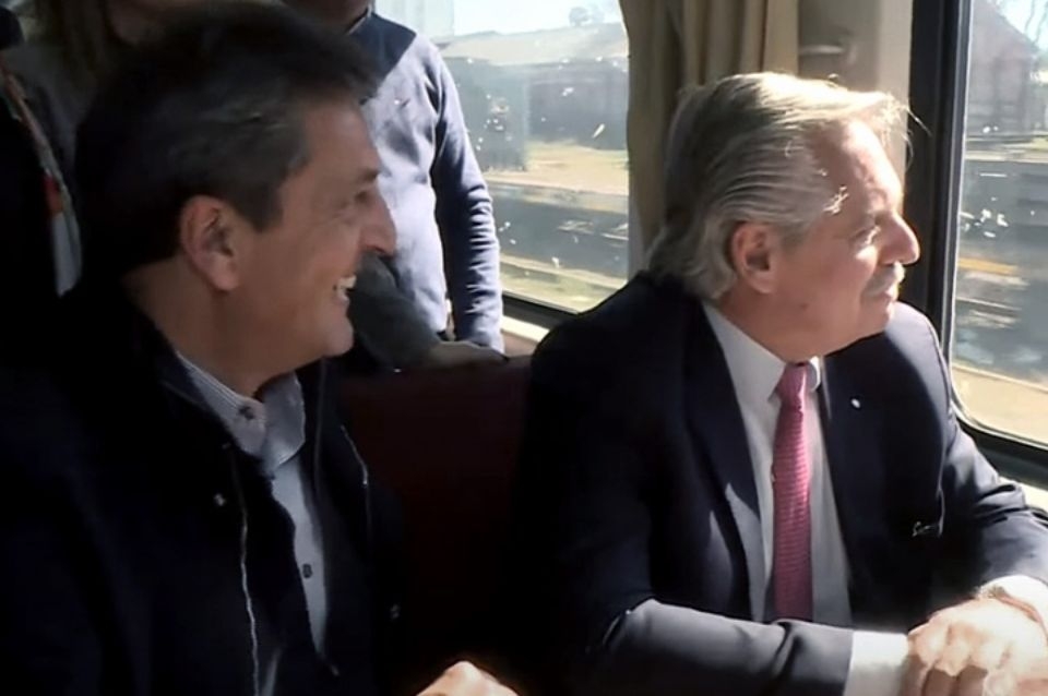 Fernández y Massa -acompañados por el ministro de Transporte, Alexis Guerrera- arribaron en avión a la ciudad de Rosario, desde donde viajaron en el tren hasta Cañada de Gómez, en un trayecto de media hora.