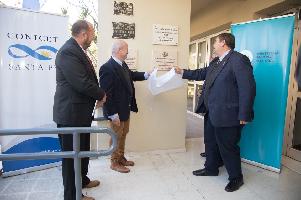 Ciudad Universitaria de la Universidad Nacional del Litoral fue escenario para el desarrollo del acto en conmemoración por el 60° aniversario del Instituto Nacional de Limnología (INALI, UNL-CONICET). La actividad contó con la presencia del rector Enrique Mammarella; del vicepresidente de Asuntos Tecnológicos del Consejo Nacional de Investigaciones Científicas y Técnicas, Roberto Rivarola; del director del Centro Científico Tecnológico CONICET – CCT Santa Fe, Carlos Piña; y el director del INALI, Pablo Collins.