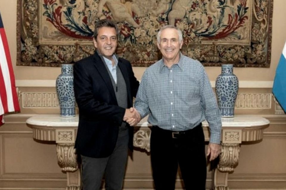 "Gracias a Sergio Massa por la productiva reunión de ayer. Esperamos seguir trabajando con él en su nuevo rol", publicó este lunes el diplomático en su cuenta de Twitter junto a una foto del encuentro.