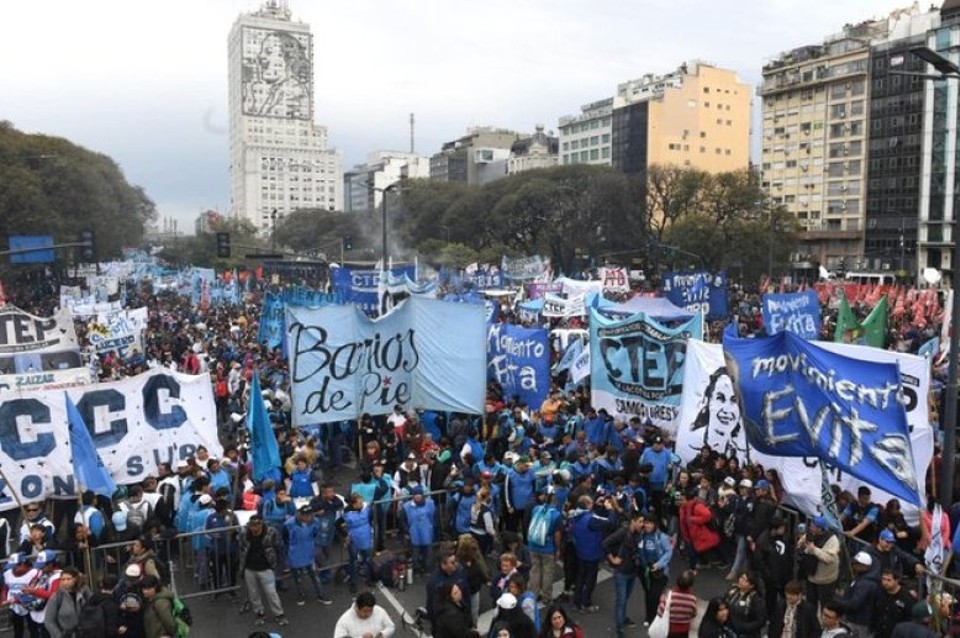 En tanto, en el cruce de las avenidas San Juan y 9 de Julio se concentraban los movimientos sociales y sectores pertenecientes al Movimiento Evita y Somos Barrios de Pie, y columnas de otras agrupaciones seguían llegando a ese lugar desde Constitución.