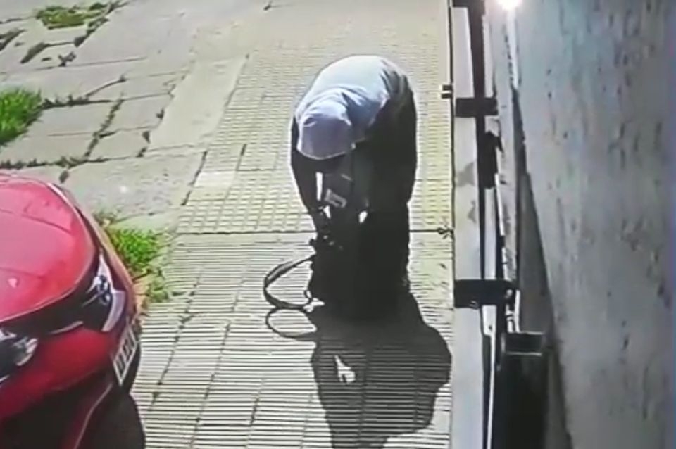 El robo quedó registrado en las cámaras de seguridad de otra vivienda donde se ve que minutos después de las 13.30hs de este miércoles, un hombre con una capucha blanca abre la casilla, tira con fuerza del aparato e incluso se cae y queda sentado. Luego se levanta, camina unos metros y mete el medidor completo dentro de una mochila, y se da a la fuga.
