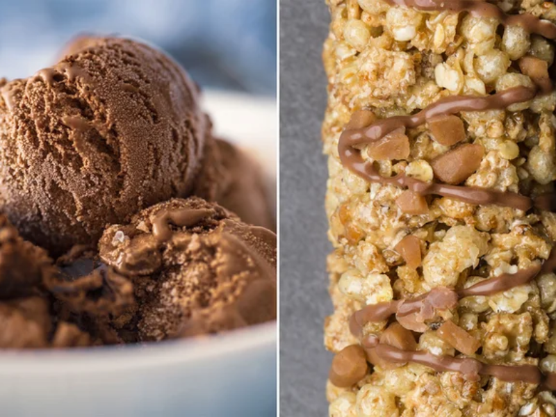 Por ejemplo. En una escala de 0 a 100, el helado de chocolate con nueces obtuvo 35 puntos, mientras que una barra de granola de coco y chocolate recibió sólo 15 puntos. Sin embargo, el yogur helado, que se promociona como la alternativa saludable al helado, sólo obtuvo 23 puntos.