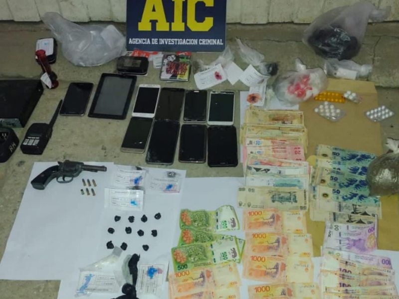 El allanamiento se llevó a cabo en una vivienda de calle Avenida Iriondo e intercesión con calle 1 ero de Mayo; allí se detuvo a un hombre y se secuestró un arma de fuego calibre 22, con cartuchos. Asimismo se incautó: envoltorios con cocaína y cannabis sativa; otras bolsas conteniendo más de 500 grs de Cannabis, Blisters de Pastillas, Recortes, pipa con vestigios de sustancias, plato y cigarrera. Se sumó al secuestro elementos que aportan valor a la investigación como componentes electrónicos: Tablet, pendrvie, Handy y DVR.