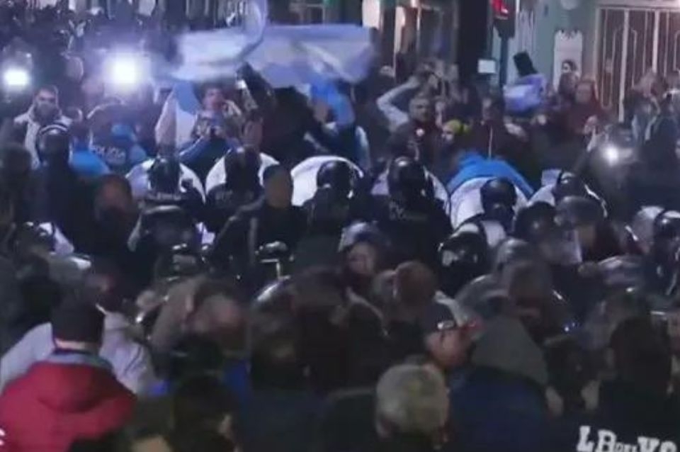 En ese momento, efectivos policiales intercedieron para que no se produjeran enfrentamientos entre las facciones frente al domicilio de la ex jefa de Estado en la calle Uruguay al 1.300 en el barrio porteño de Recoleta.