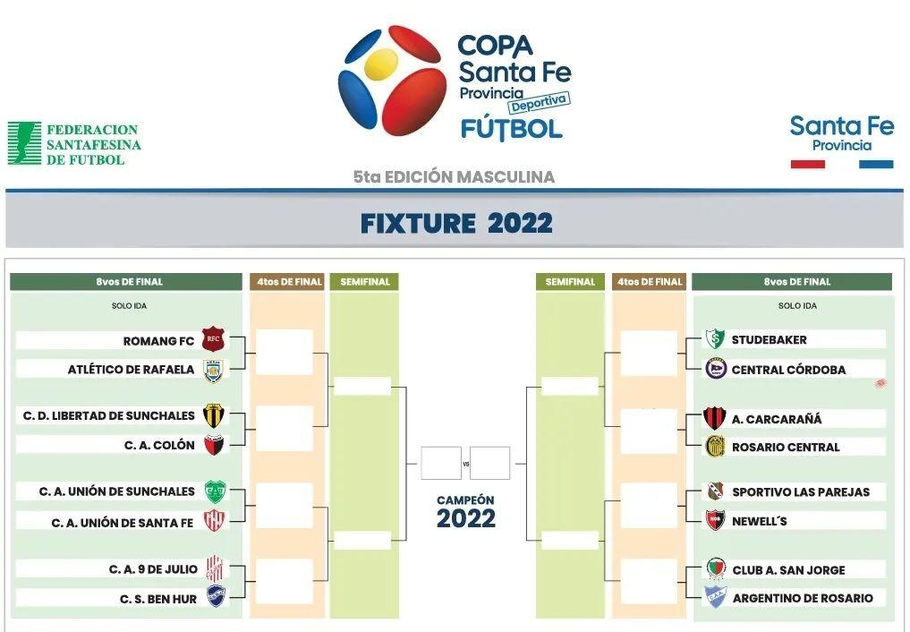 A partir del domingo 28 de agosto se disputarán los octavos de final de la Copa Santa Fe de fútbol masculino, cruces que se definirán a un partido. Colón y Unión, que debutarán ante Libertad y Unión de Sunchales, respectivamente, podrían cruzarse en semifinales.