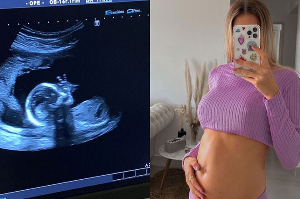 La modelo publicó una de las primeras ecografías de la nena, en donde se la ve levantando una de sus manitos y haciendo el gesto de amor y paz.