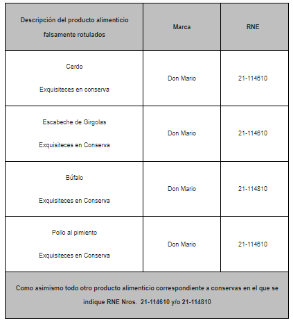 El Ministerio de Salud, a través de la Agencia Santafesina de Seguridad Alimentaria (Assal), prohibió la elaboración, tenencia, fraccionamiento, transporte, comercialización y exposición, en todo el territorio nacional los productos alimenticios rotulados como conservas marca Don Mario.