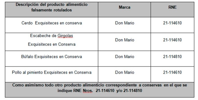 El Ministerio de Salud, a través de la Agencia Santafesina de Seguridad Alimentaria (Assal), prohibió la elaboración, tenencia, fraccionamiento, transporte, comercialización y exposición, en todo el territorio nacional los productos alimenticios rotulados Conservas marca Don Mario.