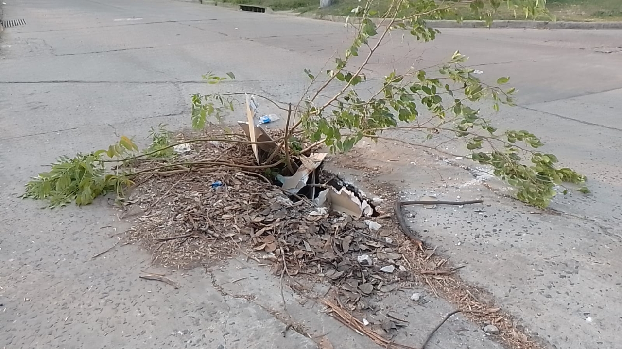 Estos aseguran que hace 4 meses que comenzó a producirse y ahora los tapan con ramas y otros elementos para evitar que los autos caigan en el pozo.