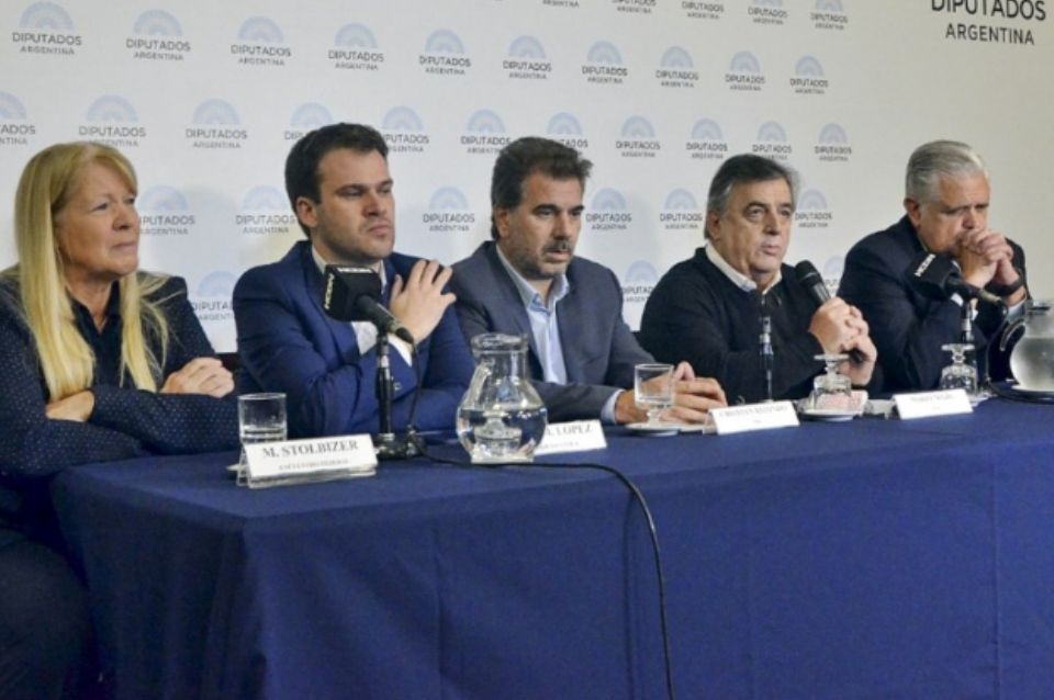 Los titulares de las bancadas que conforman el interbloque Juntos por el Cambio en la Cámara de Diputados presentaron este jueves en conferencia de prensa un proyecto de resolución en el que pidieron formalmente el juicio político contra el presidente Alberto Fernández por sus "amenazas púbicas" contra el fiscal Diego Luciani, quien solicitó una condena de 12 años de prisión contra Cristina Kirchner en el juicio por la obra pública.