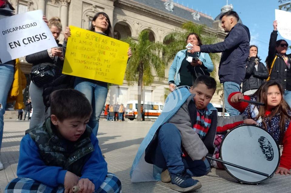 En el transcurso de esta mañana, representantes del sector y familiares de chicos con discapacidad realizan una protesta frente a Casa de Gobierno.