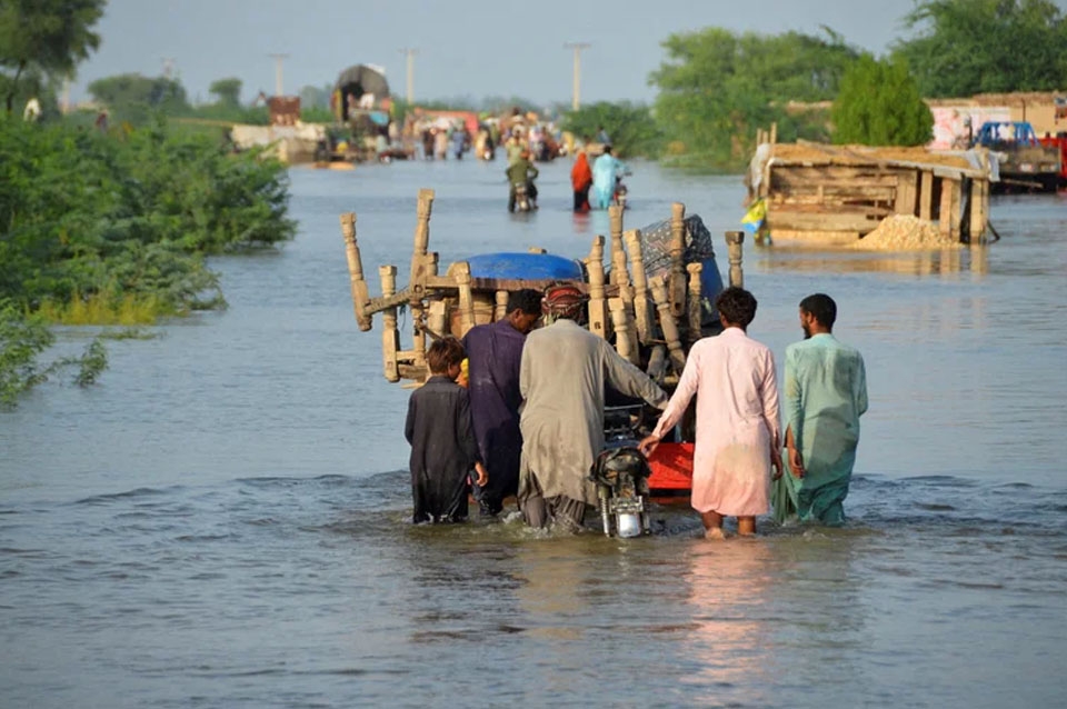 Rescatistas asistieron a familias varadas y lanzaron paquetes de alimentos a zonas inaccesibles después que el histórico diluvio, provocado por unas lluvias monzónicas inusualmente intensas, destruyera casas, negocios, cultivos e infraestructura, afectando a 33 millones de personas.