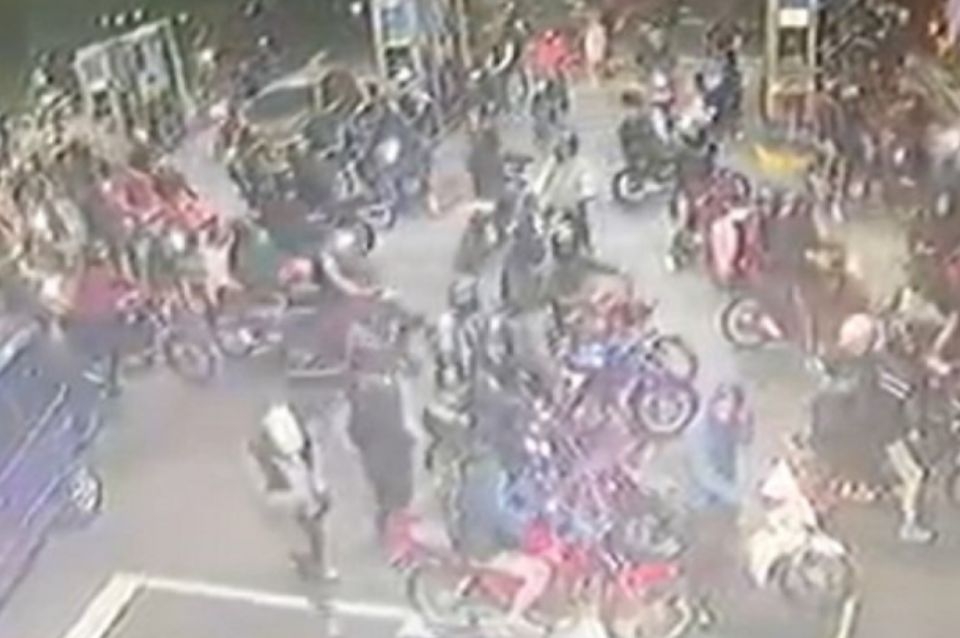Según puede verse en las imágenes, mientras la mayoría de los sujetos a bordo de las motos se robaba el gasoil, otros paseaban por la zona de carga y algunos hacían piruetas balanceándose en una rueda, mientras que trascendió que el lugar fue desvalijado antes de que llegara la Policía.
