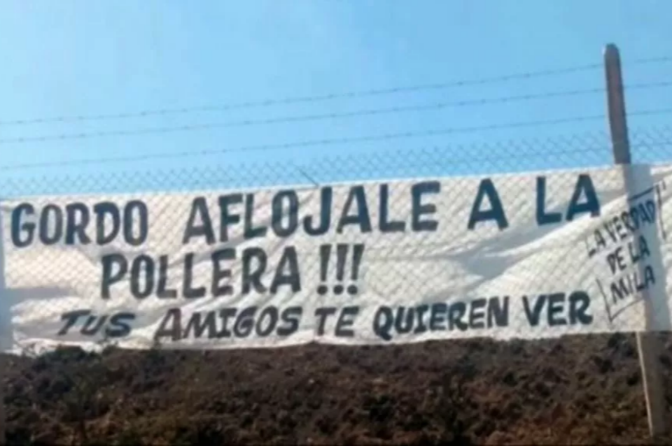 Con un pasacalle atado a un alambrado, los muchachos le compartieron sus inquietudes al “Gordo”. “Gordo, aflojale a la pollera, tus amigos te quieren ver”, dice el texto picaresco.