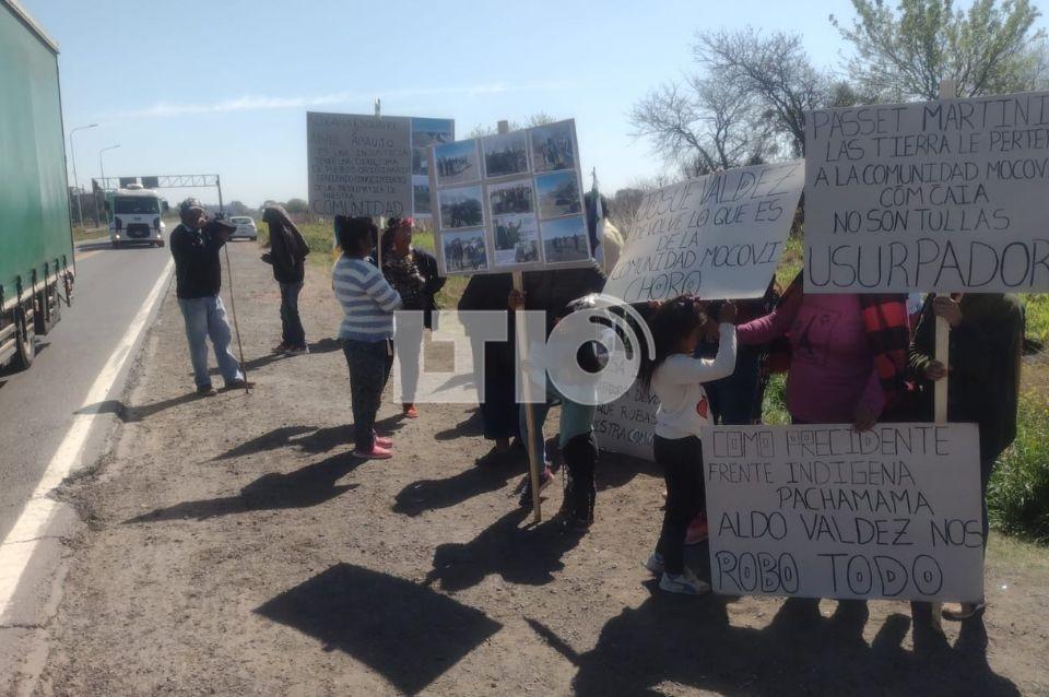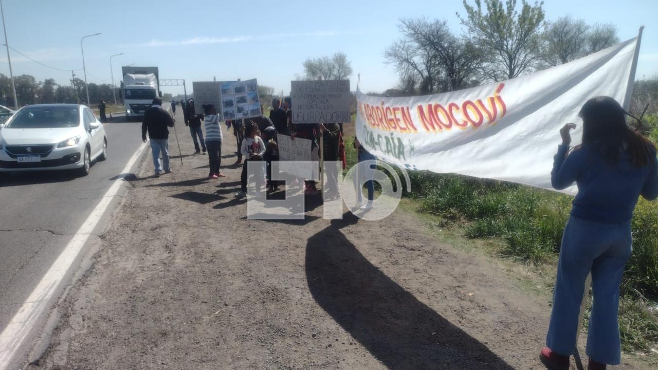 Un grupo de integrantes de la comunidad Mocoví realiza una protesta con corte intermitente sobre la Ruta 11, en su intersección con la Circunvalación.