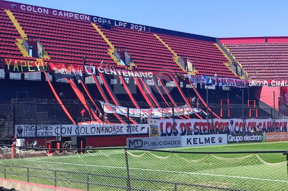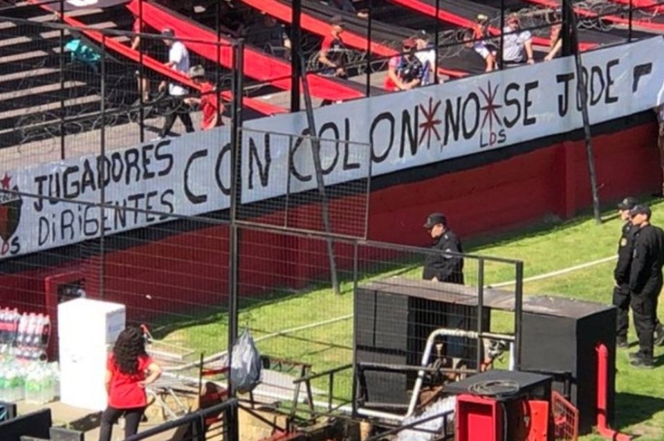 En este sentido, en la previa del partido ante San Lorenzo, se colocó una bandera con un mensaje amenzante en el alambrado de la tribuna norte: "Jugadores y dirigentes, con Colón no se joda", cerrándose con el dibujo de una pistola.