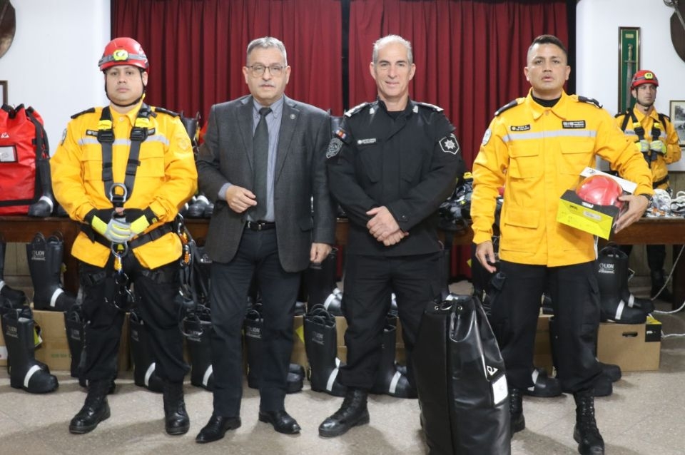 El gobierno provincial entregó al Grupo Especial de Rescatistas Zapadores (GERZ), dependientes de la Dirección General de Bomberos Zapadores, equipamiento para rescate en altura. Se trata de 20 kits de rescate individual, 5 kits de rescate colectivo, 5 trípodes de rescate, 5 tablas espinales con fijadores y 5 camillas - canasto de suspensión por cuerdas.